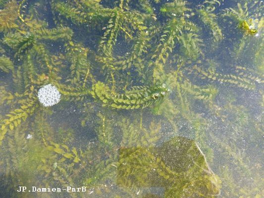 Plante vivace, toujours immergée. Les tiges (0,2 à 1 m), fragiles, se fragmentent aisément et portent de nombreuses ramifications. Les feuilles sont planes, ovales, finement dentelées et généralement verticillées par 3. Petite fleur blanc crème, quasiment transparente (Ø 5mm), à 3 pétales, dépassant juste de la surface de l’eau. Elles sont toutes femelles